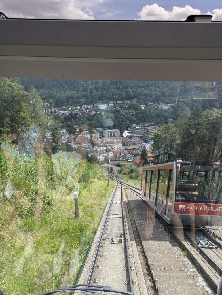 I started my journey early from Nürnberg. When travelling using a Deutschland ticket (Germany ticket), You travel to Stuttgart with RE90 and then take an IRE 1 to Pforzheim also known as Gold City for its history in jewellery making. At Pforzheim, I joined my friend who was visiting with his family. We got an S6 that takes us through the black forest to Bad Wildbad.