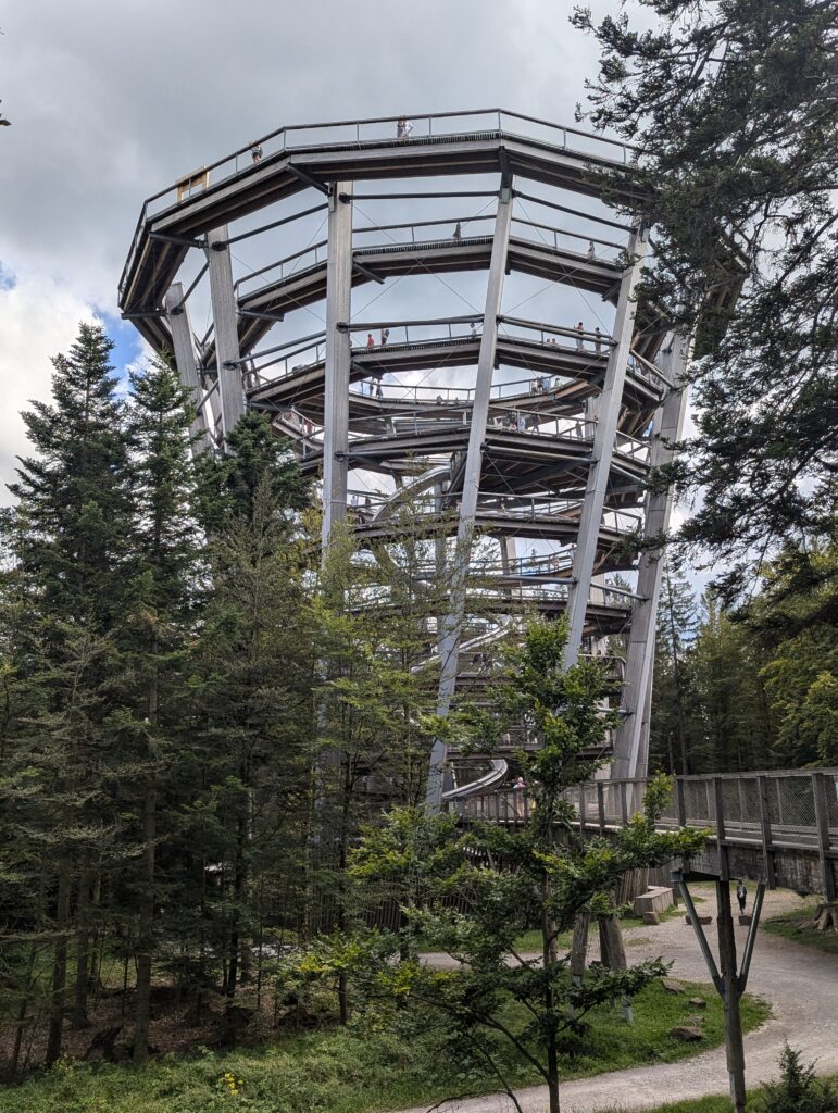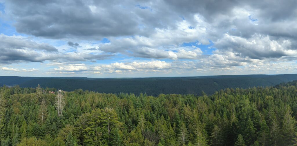 The highlight of the Tree Top Walk is the spiral observation tower, standing 40 metres tall. As you ascend the tower, the view expands, culminating in a 360-degree panorama of the Black Forest that will leave you breathless. On a clear day, you can see for miles, with the dense forest stretching out in every direction.