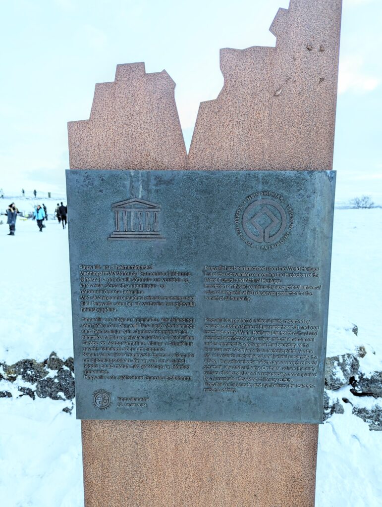 After a good lunch at Hotel Geysir, we head to our next location in the itinerary and a true marvel- Þingvellir pronounced as Thingvellir. It was the site of the Alþing, the annual parliament of Iceland from the year 930. This is believed to be the first parliament in the world. A UNESCO World Heritage Site and now a national park, it is a site of historical, geological and cultural significance.