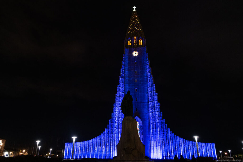 My last stop on the first day was the church itself. The church stands tall and has a distinctive curved spire and side wings. It resembles Iceland’s basalt columns. In front of the church is a statue of explorer Leif Erikson which predates the church.