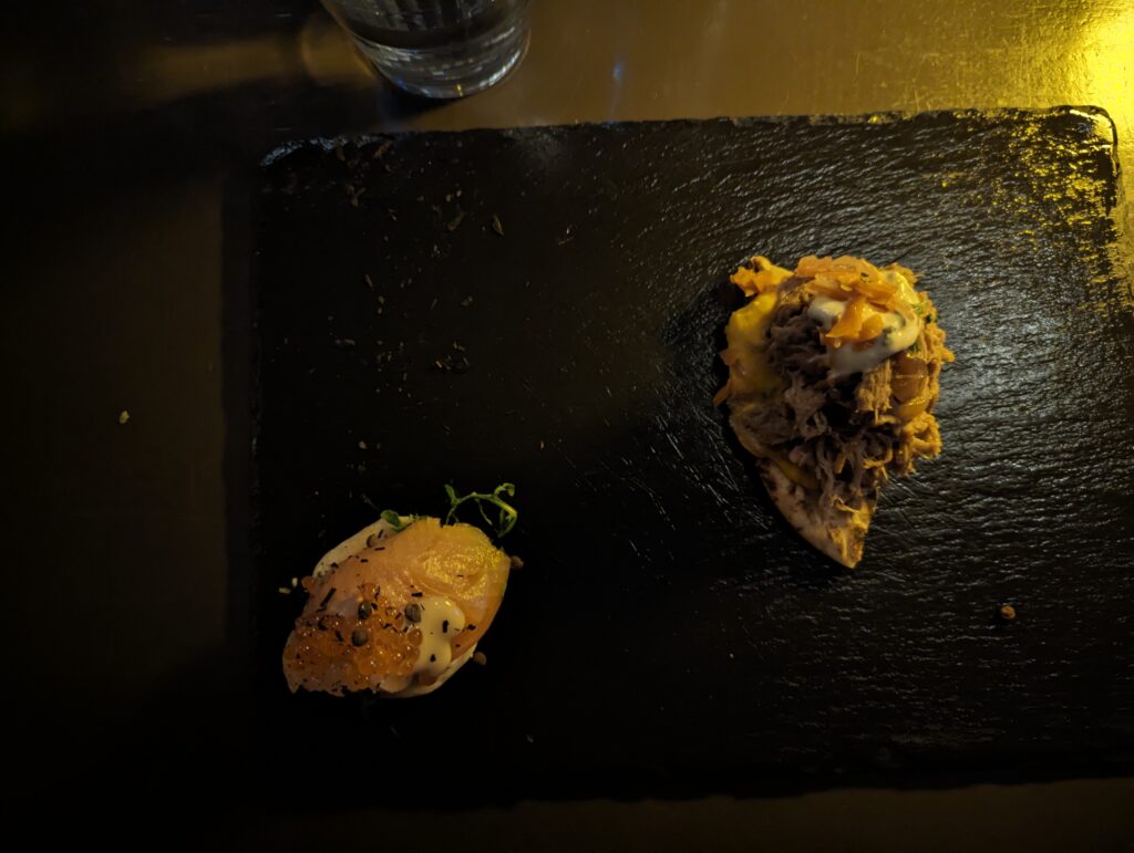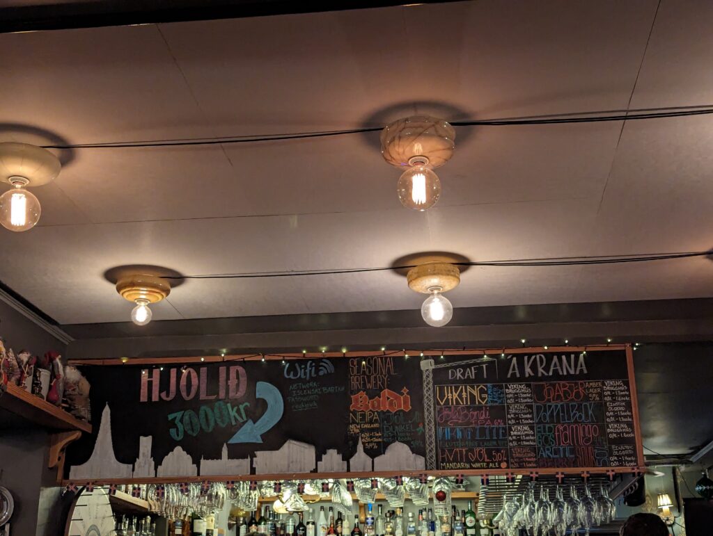 Our first stop was Fjallkonan, where everyone from the group introduced themselves and got to know each other a little. Our food for the day was Lamb & flatbread and Arctic charr & blini. The lamb is slow-cooked, shredded and garnished with pickled red onions and horseradish sauce. Arctic charr was grilled and topped with onions and cods.