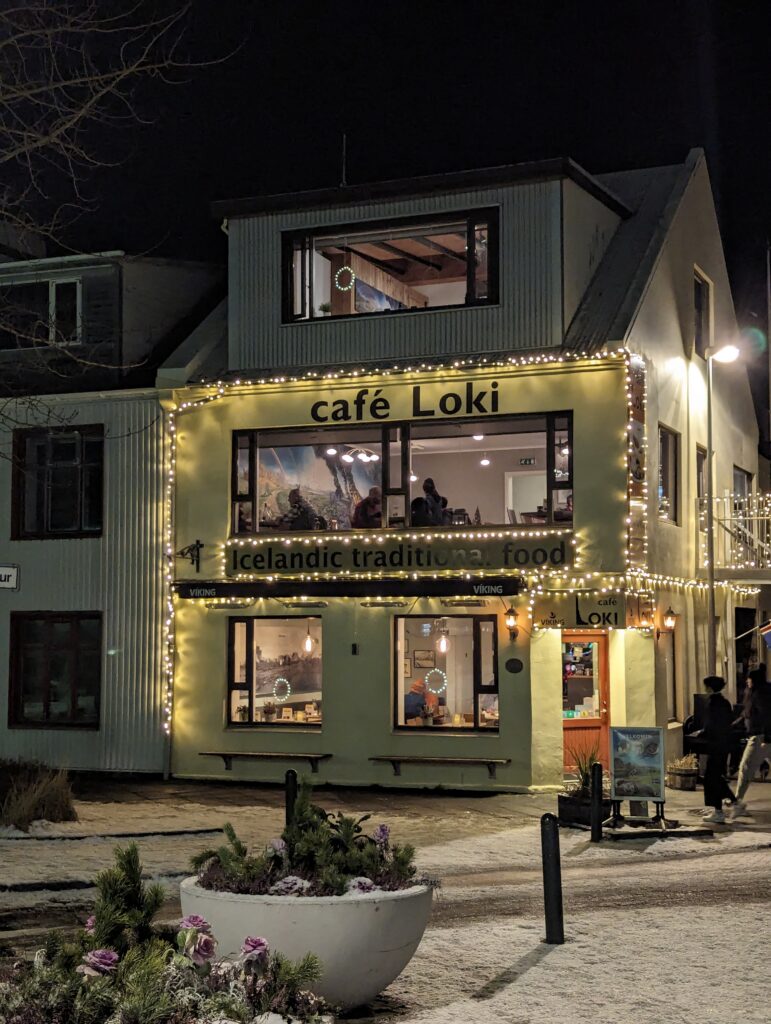 After having some delicious and unique seafood experience, it was time for our last stop. It would be a shame not to end the tour with a dessert. We went to the most famous cafe in Reykjavik- Kaffi Loki. The dessert was none other than their speciality- Loki’s unique Rye bread ice cream.