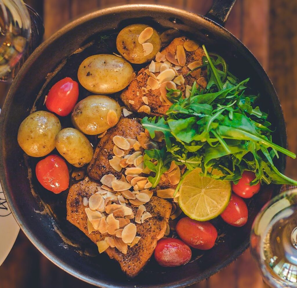 Our second stop was the famous seafood restaurant in Reykjavik- Messinn. Messin in Icelandic means “The Mess deck” like on the fishing ships. They are known for cooking seafood dishes on pans. Our meal for the day was Arctic Charr and traditional Icelandic ”Plokkfiskur”. Charr was garnished with cherry tomatoes, almonds, honey and lemon lending it a sweet and sour dressing. Icelandic ”Plokkfiskur” or cod stew is served hot on a pan with a bowl of sweet rye bread. Rye bread is a speciality of Iceland.