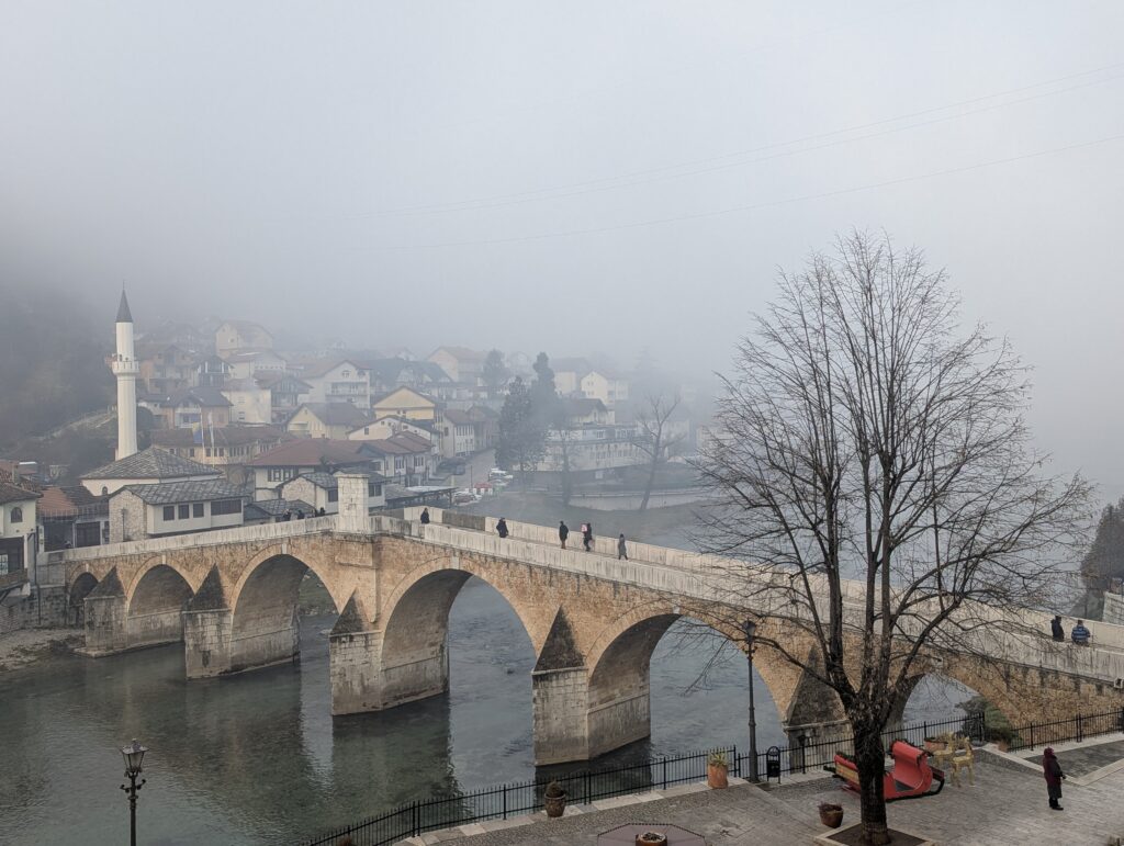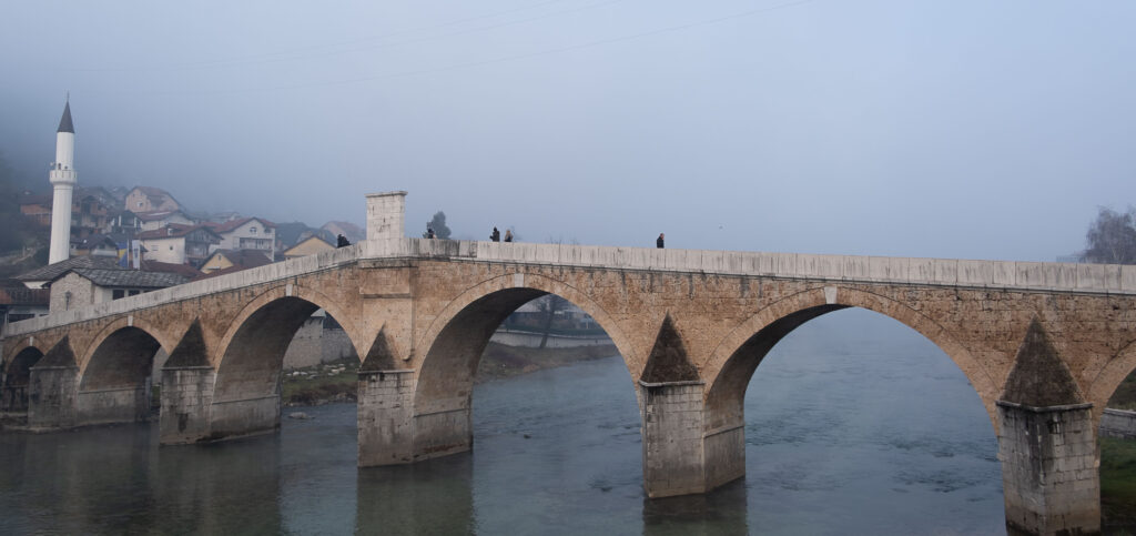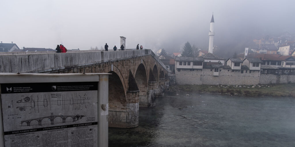 En route to Konjic, one can see the results of the war. Holes of shell shrapnel mark the buildings. It is a short stop at Konjic Bridge being the main attraction. The foggy morning made our photos look aesthetic and dreamy. To get a better view of the bridge, climb the steps on the opposite side of the road. The Old Stone Bridge spans over the Neretva River and is a national monument.