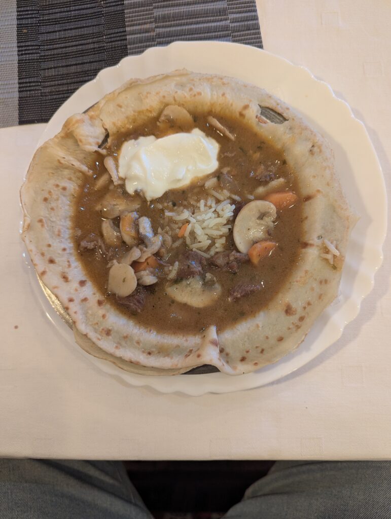 As mentioned in the earlier paragraph on East meets West, the Eastern part is loaded with a lot of restaurants, cafes and clothing stores. You can try some authentic Bosnian foods in these restaurants. We stopped for lunch at Kolobara Han– a traditional Bosnian restaurant. We gave it a try with Hajj ćevap– a mushroom and veal sauce dish served on a flatbread that’s stuck onto the bowl acting like a packet.