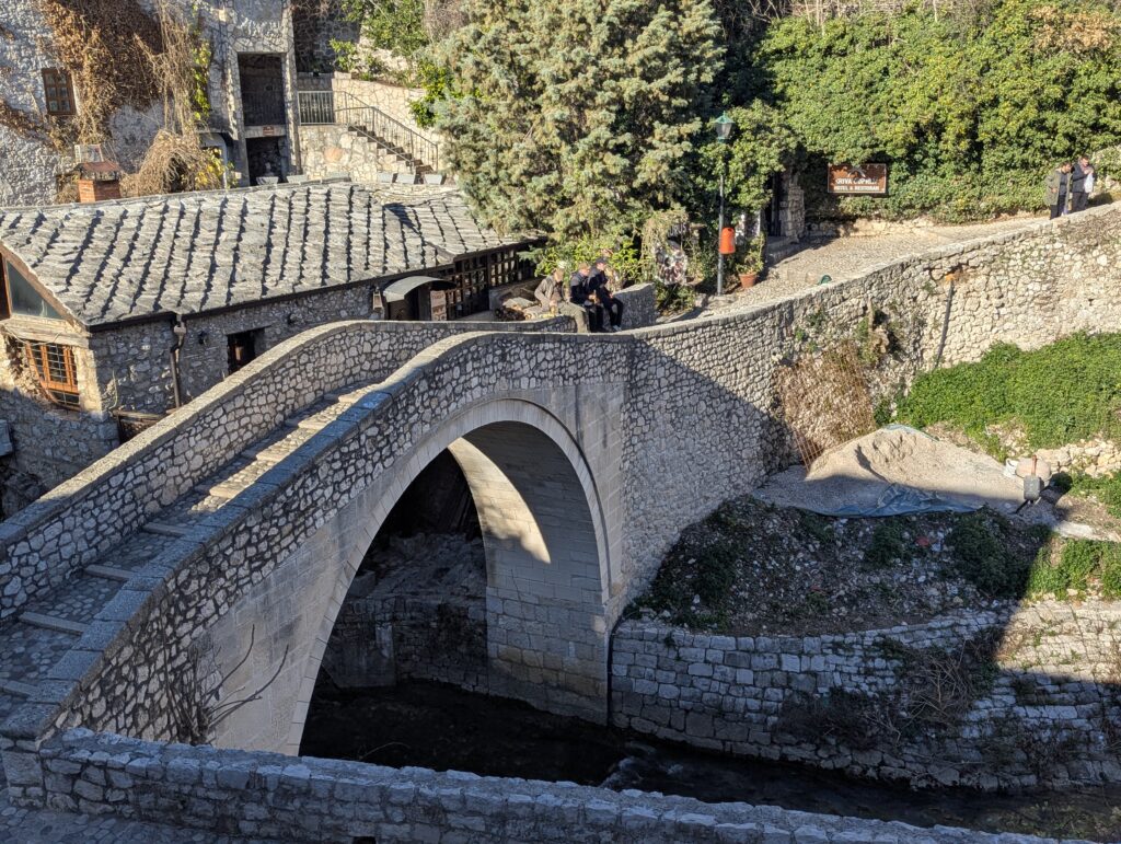 You walk through the Crooked Bridge before taking the steps to the banks below the Old Bridge. This is the viewpoint for the most-seen photos of the bridge on the internet.