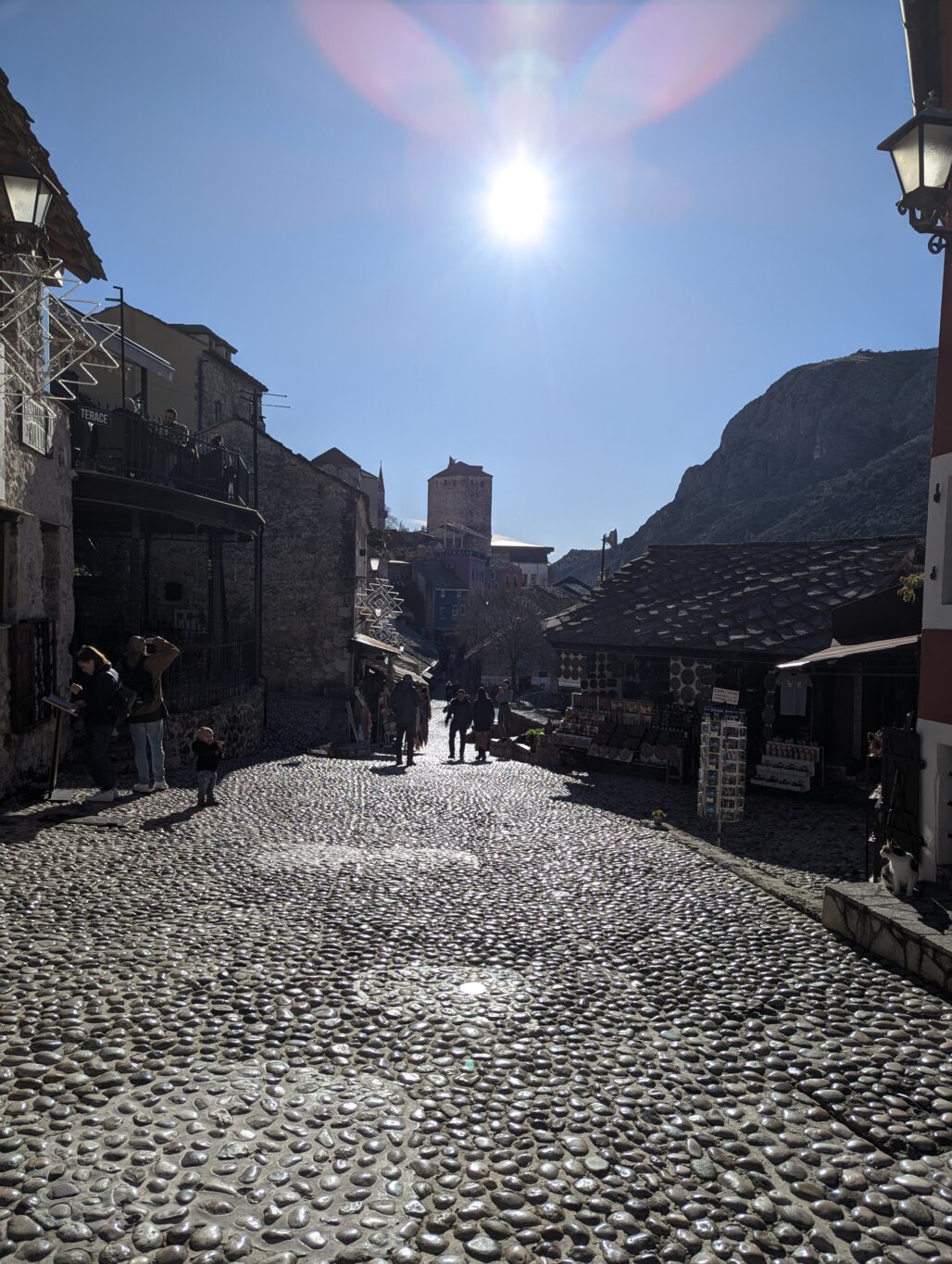We continued our tour to Mostar Old Town. Lined with cobbled streets and souvenir shops, the old town provides a great view of the bridge. We strolled through the bazaar for a good 45 min and then our guide took us to Koski Mehmed Pasha Mosque– a small mosque with picturesque views. Another mosque in the vicinity was Karađoz Beg Mosque– designed by famous Turkish architect Mimar Sinan.