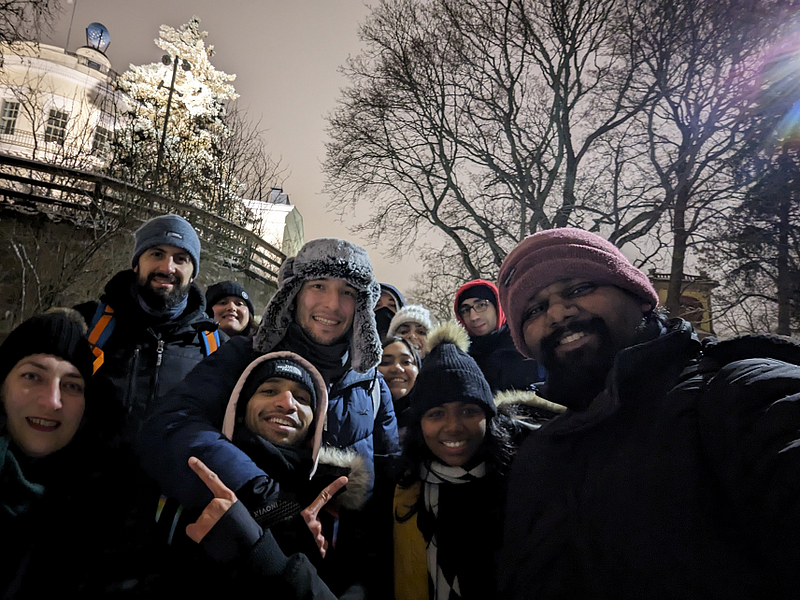 In the middle of the municipal park was an open-air amphitheatre which is a performing arts theatre in the summer. We played some snowball battles and everyone sang a few lines of ‘We Will Rock You’ and slowly headed back to the pickup point. We made sure that we took a group selfie after a great evening.
